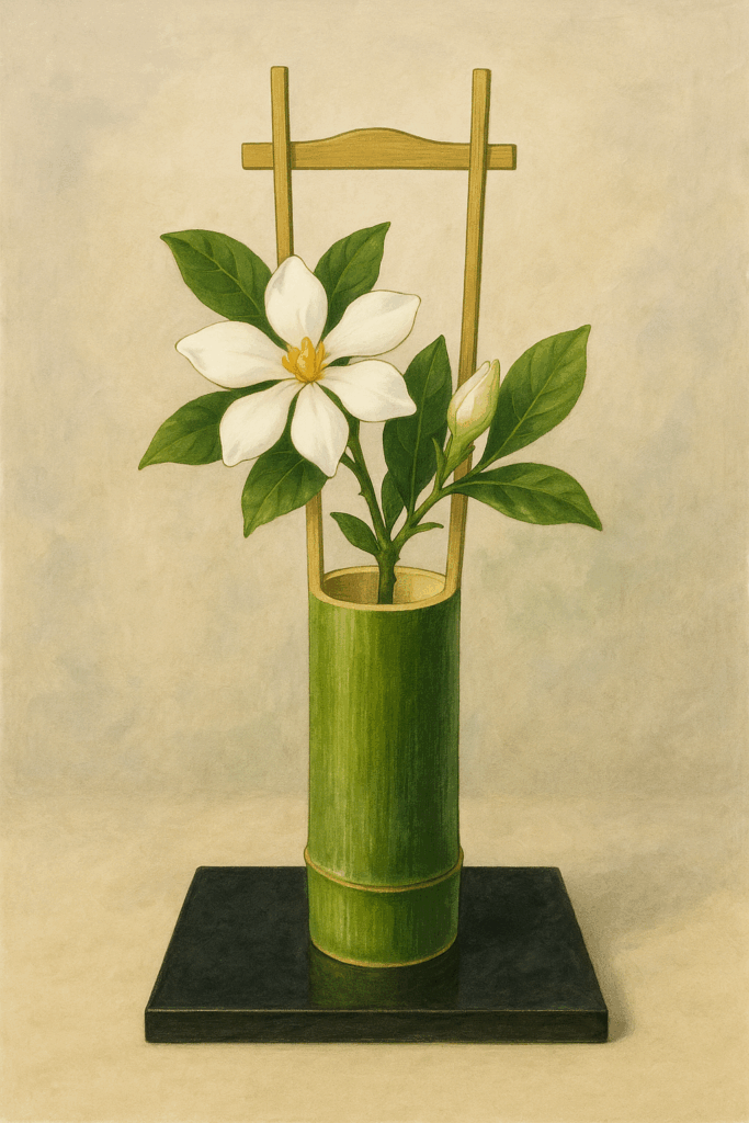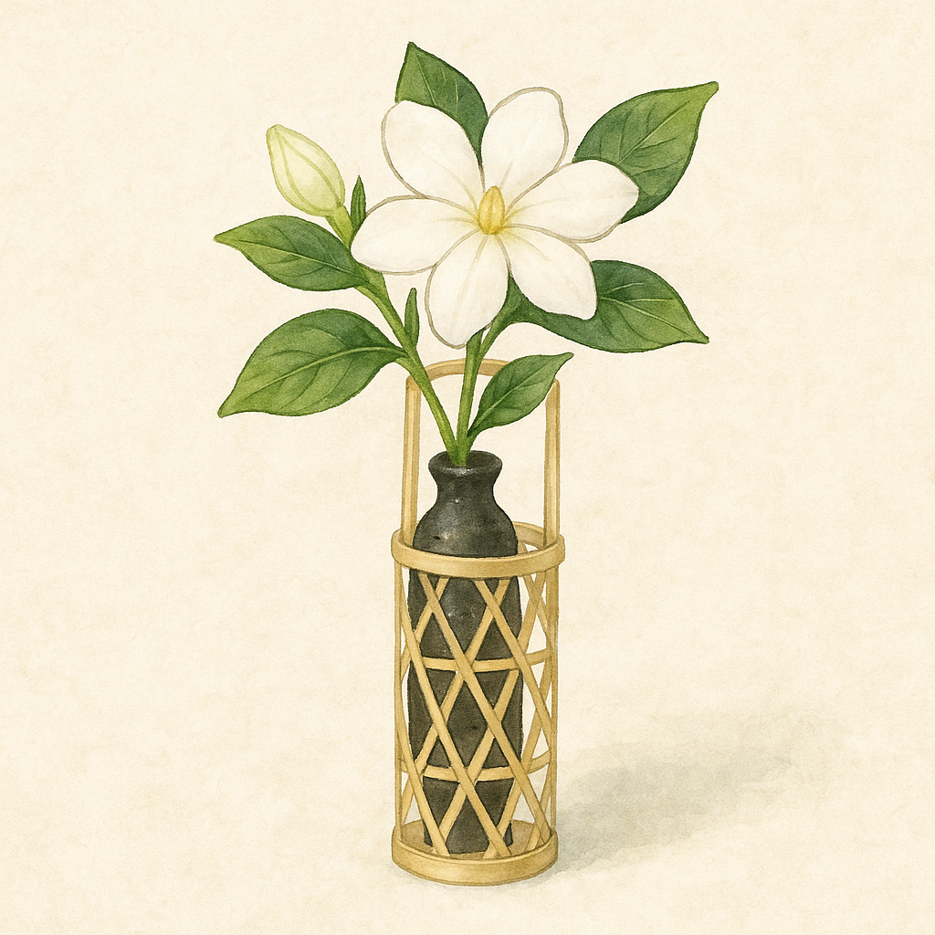 - 夏炉のしつらえ:青竹や白竹の花入れに一輪置き、香りで涼感を増します。